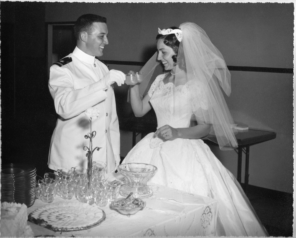 On June 4th, 2025 Kay and I celebrated our 65th Wedding Anniversary. Here we are on our wedding day! I was 22 and Kay was 20. We had been devoted to each other already for 5 years waiting for the Navy to allow us to be married.